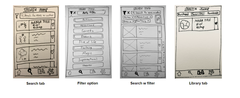 The first thing I did was conduct a competitive analysis on Shonen Jump's biggest competitors, and this further validated my decision to add these filtering and favoriting features, as only one of them allowed favoriting of manga while none of them provided any kind of filtering. Through further research on the demographics, I came to understand that the app was mainly targeting English-speakers who were 25 years of age and older.